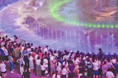 6月4日晚,位于印象济南·泉世界的喷泉开启,吸引不少市民游客驻足纳凉。济南时报·新黄河客户端王锋 摄