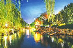 夏日夜晚时分,黑虎泉群护城河畔灯影璀璨,市民们纷纷来此观景赏泉,享受清凉。